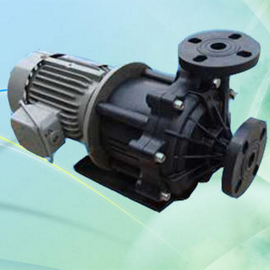 磁驱动泵是一种无漏泵。用磁力联轴器隔离传动,一般为转动的工作泵。磁联轴器(内磁联轴器)装在泵轴上,用非铁磁性材料制成的隔离罩密封在泵内;用外磁联轴器装在电机轴上,用外磁联轴器带动内磁联轴器转动,使泵工作。所以不会泄露。它的轴承是用自润滑材料制造的,并用输送的液体润滑。适合于输送无毒害、易燃、易爆、腐蚀性及贵重液体。本实用新型适用于输送含颗粒、浆体物料和高温液体(450℃),并与被送液体分离的润滑系统。